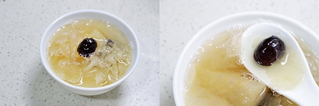 连一个小时都要不了就已经被煮的非常到位了,银耳入口糯糯的,汤汁略微起胶,实在是完美又省心~