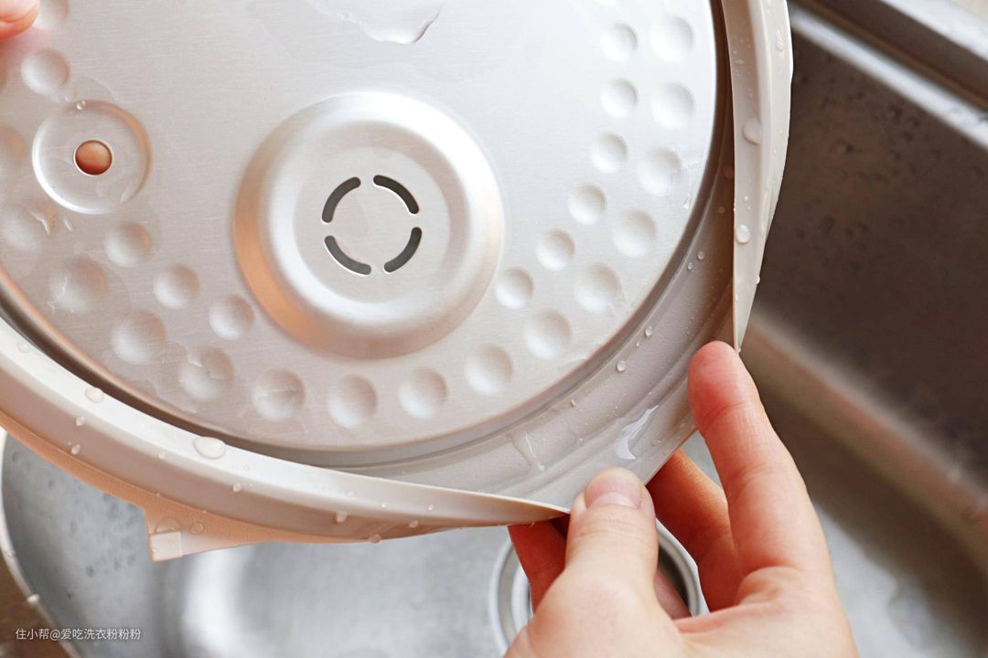 上盖边缘的密封圈其实也是非常容易藏污纳垢的地方,它这个密封圈可以揪开清理,就会方便很多啦。其实我也想过如果密封圈可以拿下来清理就更好了,不过从安全性考虑,也能理解, 毕竟密封圈来回拆卸就会失去密封性,容易引起安全事故,同学们可千万不要尝试哦~
