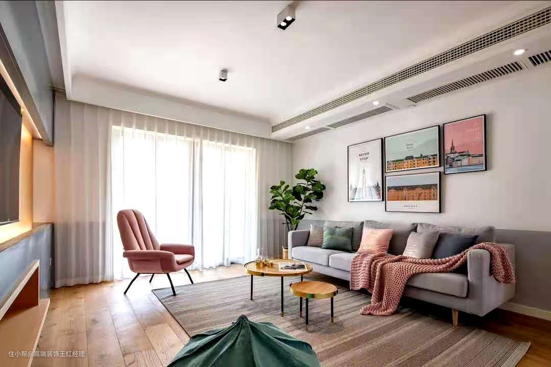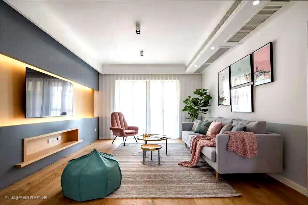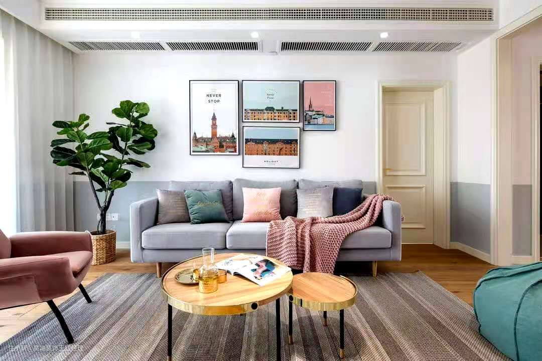 简约北欧风格三居室,简洁流畅高端装饰王红经理2020-12-25北欧风格用简洁流畅的造型,柔和明亮的色彩,方案主要利用蓝色,绿色做墙面造型搭配原木地板,粉色舒适的纺织品,简约的装饰,绿植的点缀呈现北欧风格