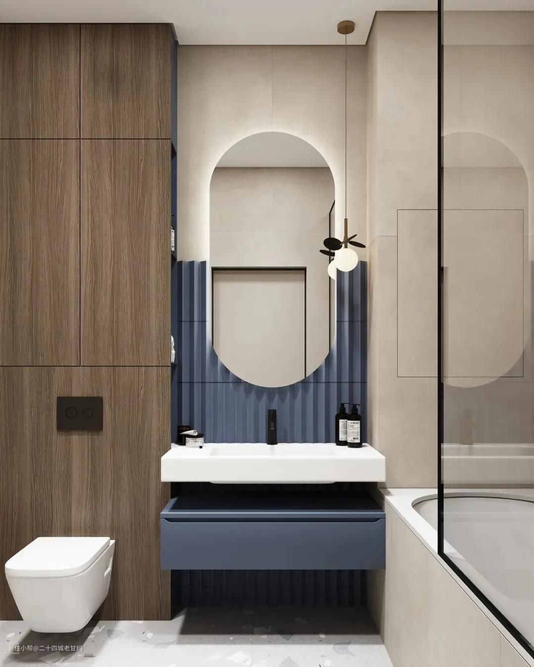 2021年,卫生间色彩搭配看这里!今天主题讲蓝色,卫生间是用水最多的地方,如果设计以蓝色为主,仿佛置身海洋,让整个空间都变得开阔大气,工作了一天,下班回家在这里冲刷掉疲惫,身心也会真正的放松下来。