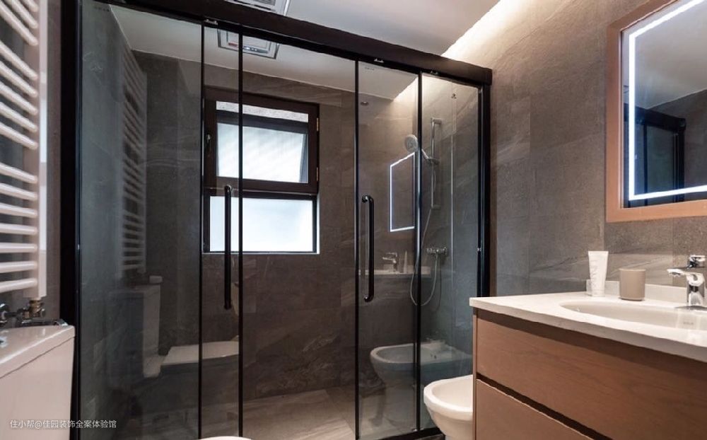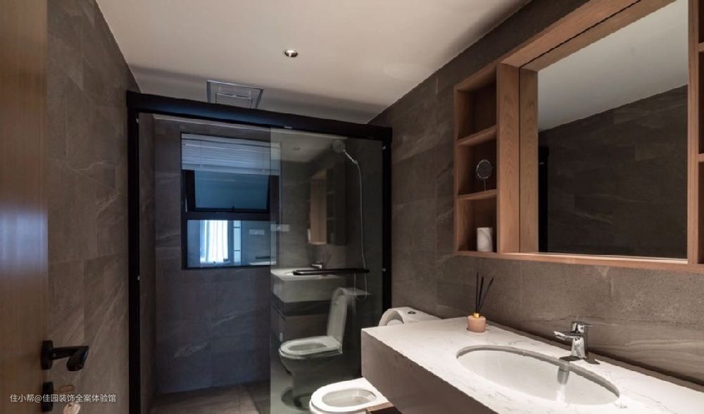 定做同色系厕所静音式推拉门,让整体房屋的效果统一又兼具使用性。
