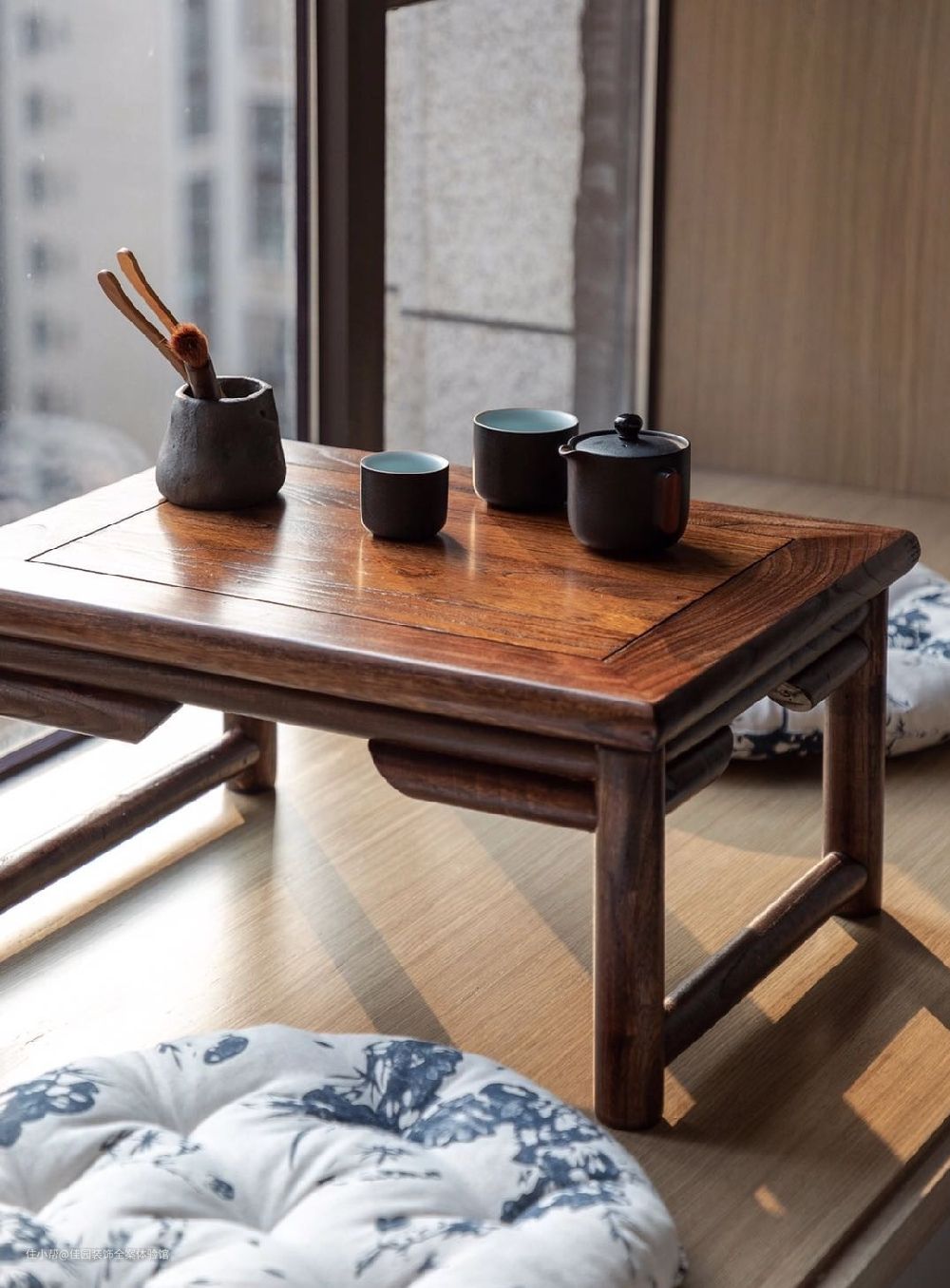 飘窗上放置一把小桌,暖暖的阳光塞满了整个屋子,好生惬意。一壶热茶,暖暖的幸福。