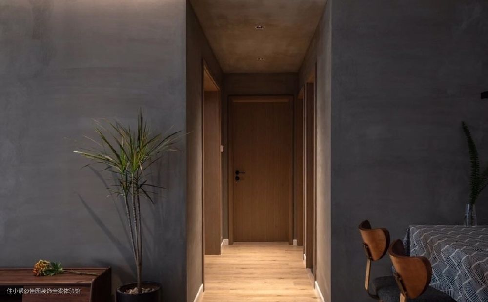 水泥漆与浅灰色木饰面搭配,新与旧的碰撞、温度与冷酷的对比,形成了一幅颇有质感的画面。