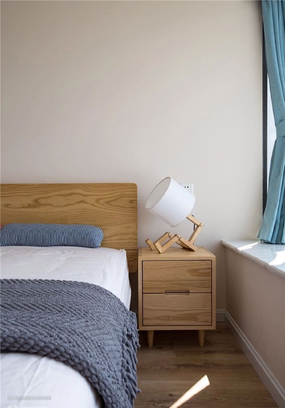 主卧也是奶咖色墙面,松果灯购于淘宝。