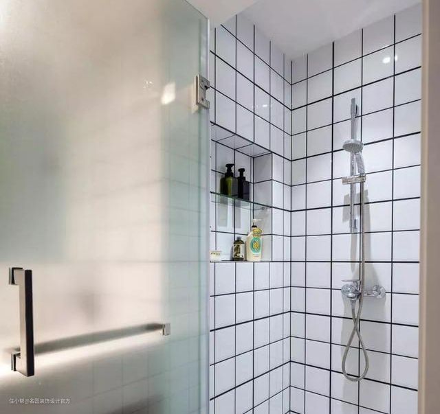 利用嵌入式壁龛设计增加收纳空间,淋浴区的壁龛可以用来摆放洗发水、沐浴露,干燥区的壁龛可以用来摆放纸巾、洗面奶、牙刷杯等。