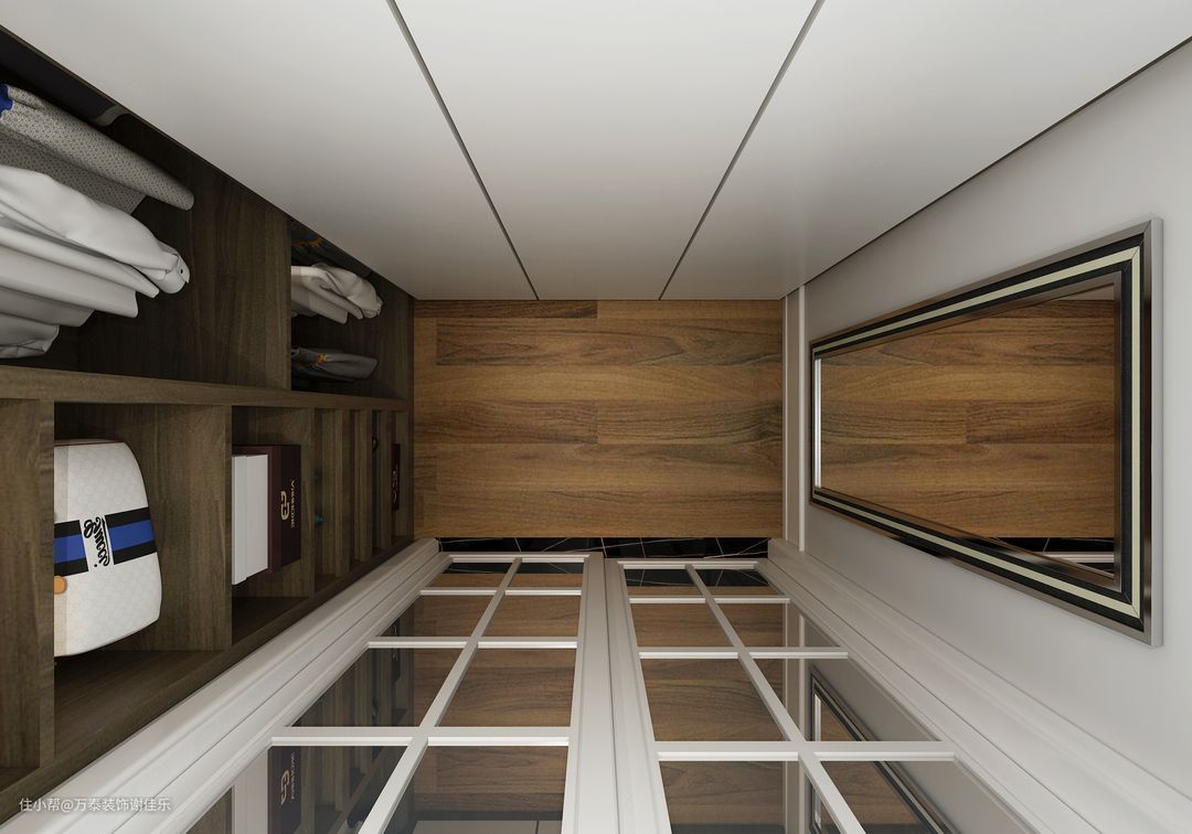 4、 入户门正对的是玄关背景,玄关后面是主卧室的衣帽间,满足业主的衣物收纳功能.