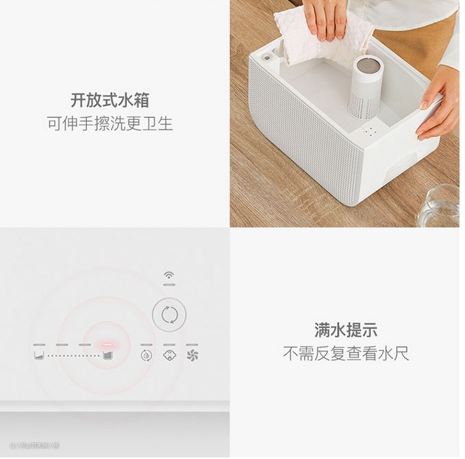 优点:独立5.3L大水箱设计,多重抑菌措施,可设定目标湿度,功耗小。