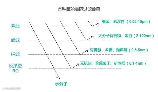 目前,在家用净水器中比较主流的净水技术主要有超滤、纳滤和RO反渗透,这几种技术中,过滤彻底度的排序是:反渗透>纳滤>超滤;