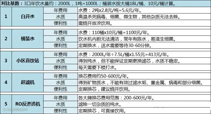 我们来看一下几种饮水方式,从水的品质和花费上会有什么样的差别呢?