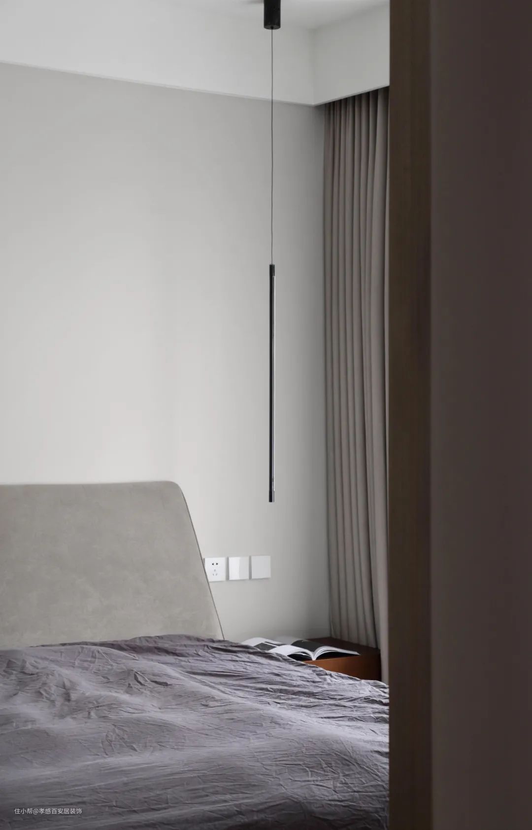 ▲主卧一切以实用为主,没有多余的装饰,床尾定制了一整墙的大衣柜,大大增加了收纳空间。