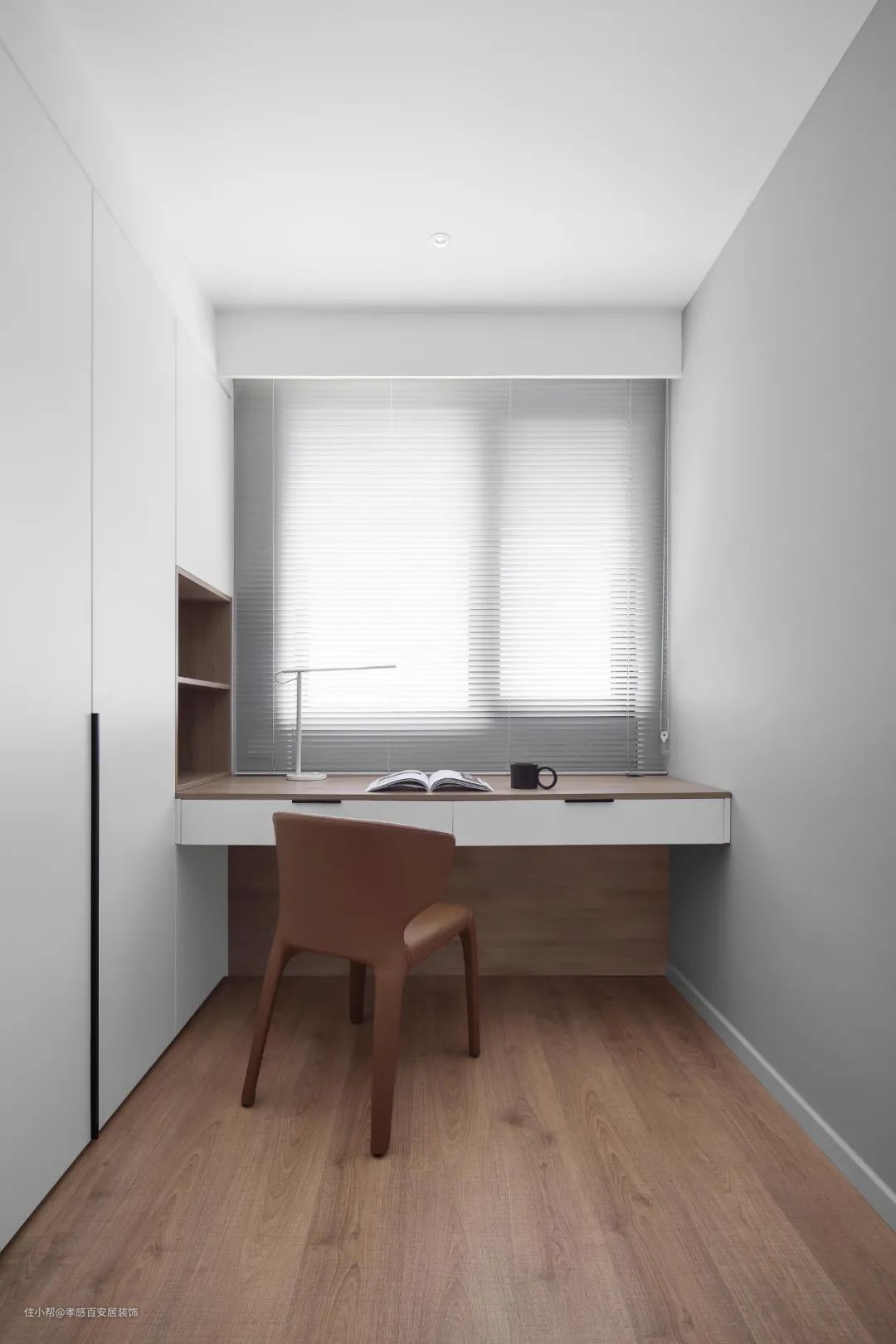 ▲书房空间不大,定制收纳柜+书桌的组合设计,功能性满分~