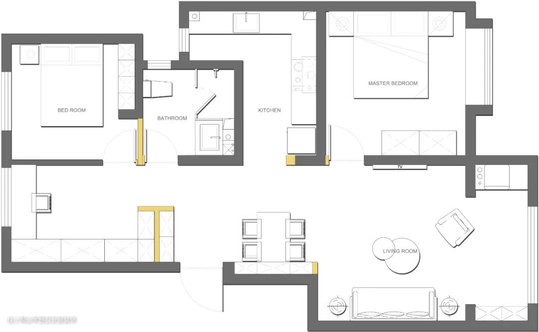 90㎡简约风三居室装修,卧室藏在电视墙里,原木+灰色的搭配低