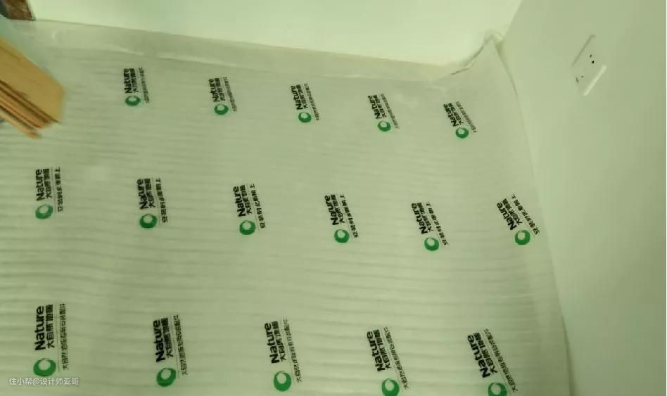 ▲不打龙骨,地面找平后铺PE膜和防潮棉,再安装地板