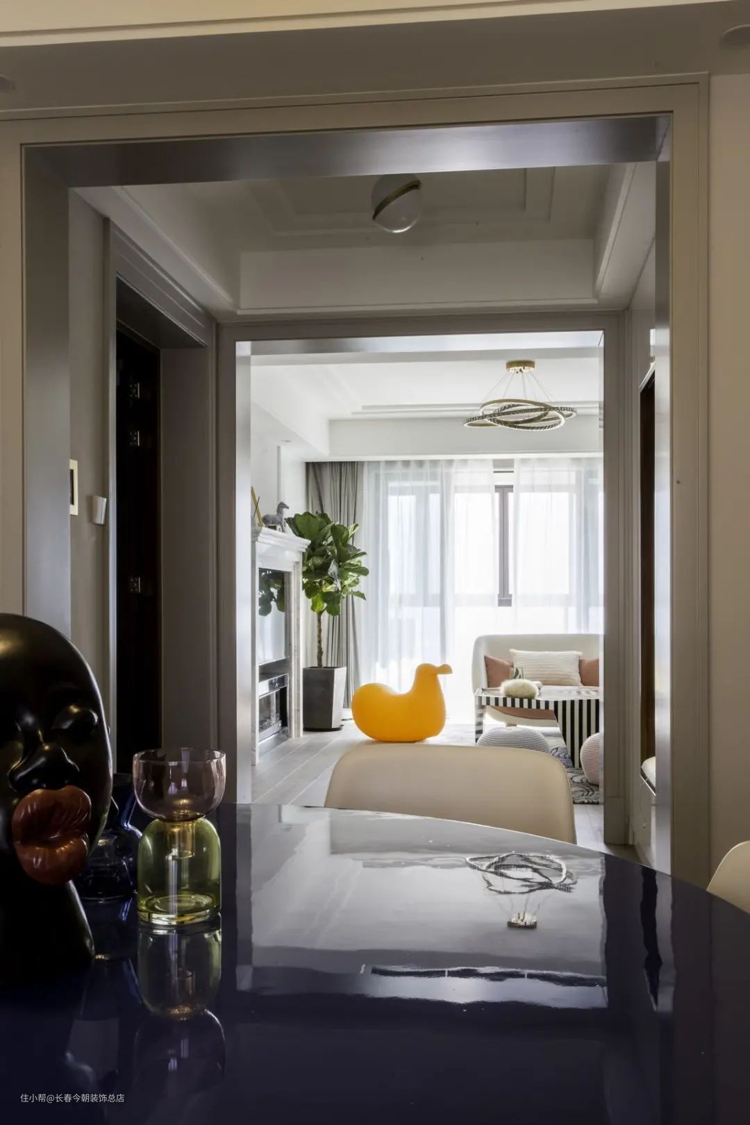 ▲餐厅与客厅之间隔着一个门洞与玄关,风格氛围上保持统一的格调,给人以自然轻松的时尚气质。