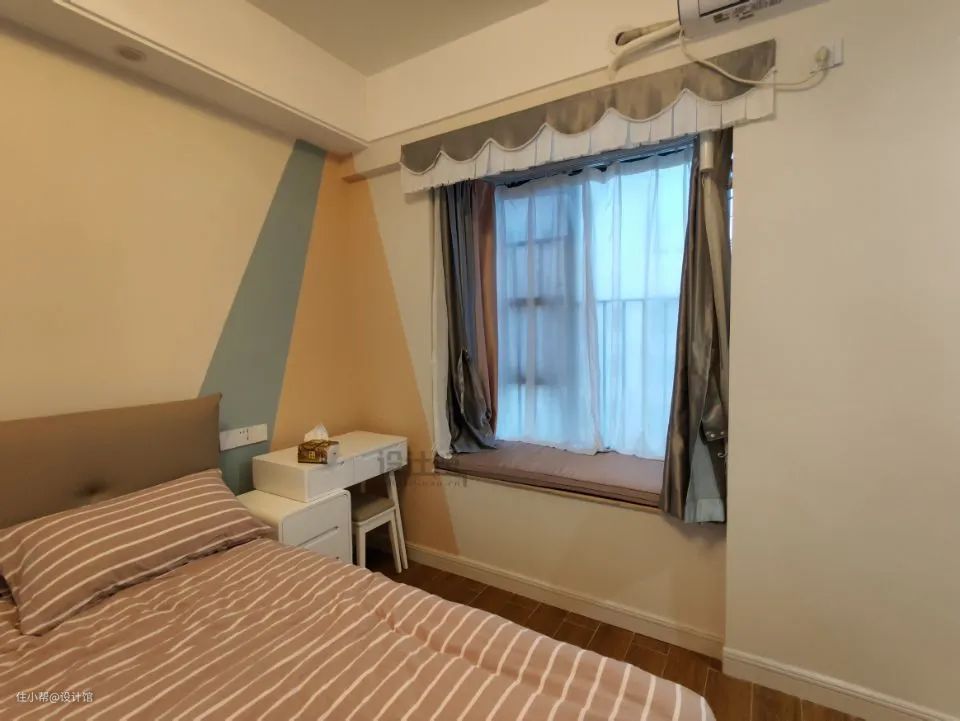 一般尺寸较大的窗户、两边剩余墙体不多,在不影响空间利用的情况,建议窗帘直接装满整面墙。之前我写过一篇文章《窗户占了大半面墙,窗帘装一半,还是装满整墙?看看设计师的分析 》里面有详细介绍窗帘占墙比例的问题,各位可以参考!