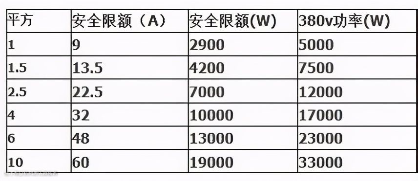 最正确的选电线方式,就是通过流经线路的电流大小。载流量,是电线最重要的一项参数。不同粗细的电线,载流量也不同,详细情况可见下表: