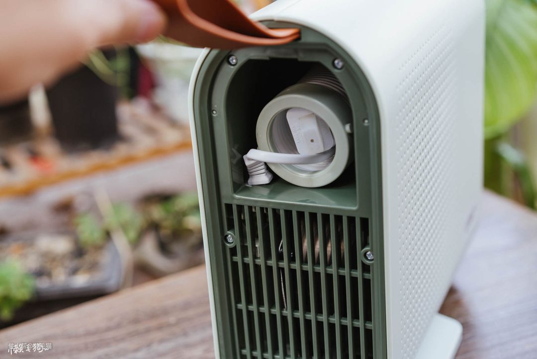 背部的盖子是可以打开的,夏天不用的时候,风管和电源线可以收纳在里面,不占空间,而且美观性也更好。