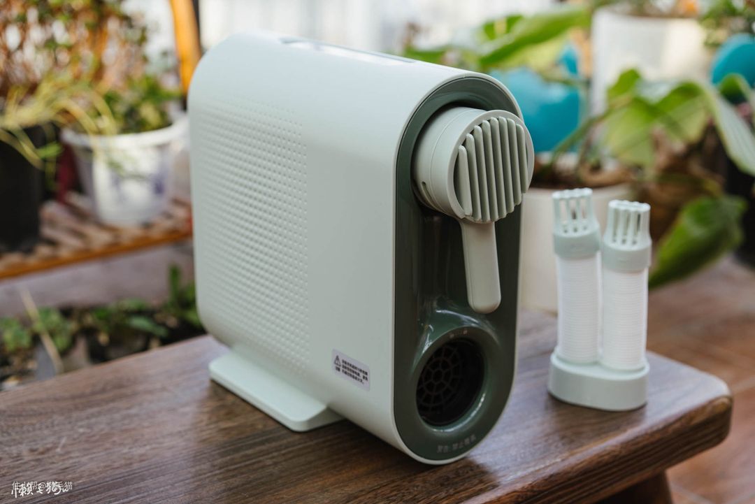 除此之外,还可以对着衣柜直吹烘干衣柜,或者对着衣架吹风烘干挂着的外套,风口处的小支架可以将管道支起来,用法非常多。