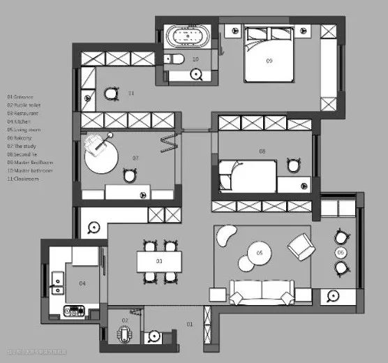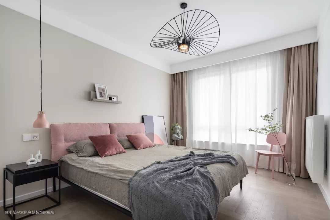 主卧以低饱和度的灰色调为主,营造静谧浪漫气息。