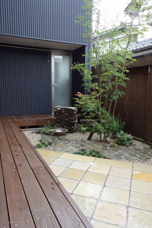 日本入户门内是下沉玄关,门外造景做入户迷你花园,进门、出门都给人满满的仪式感~