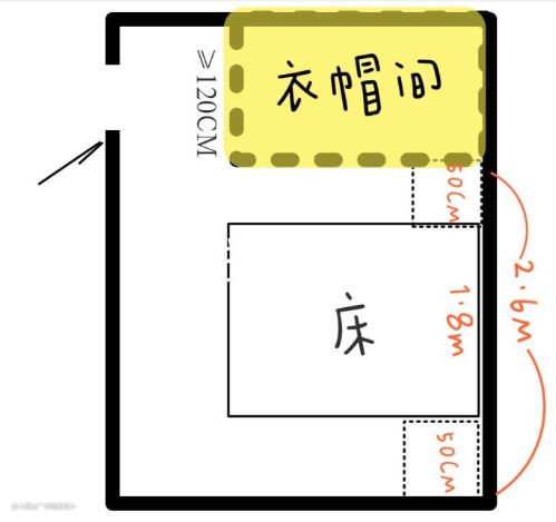 如果主卧旁边的墙体只要不是承重墙,那我们就有操作空间造出一个衣帽间