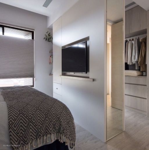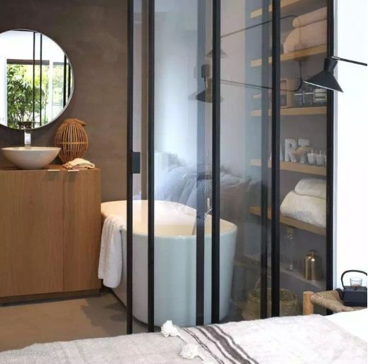 不特意界定卧室、衣帽间、卫生间等空间界限,开放式的格局让空间的幸福感更强。