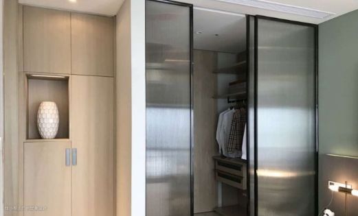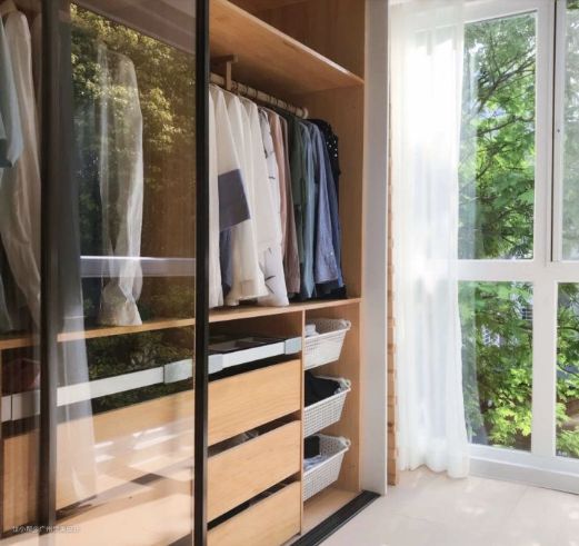 如果嫌东西太乱,可以设计玻璃柜门,衣服一目了然,而且防尘又美观。
