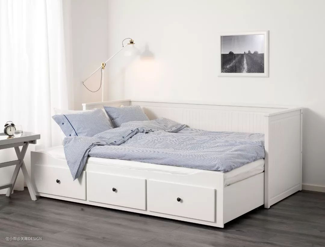 这种产品很适合超小户型的客厅,或者是小面积的次卧兼书房来使用,日常就当沙发使用,像「汉尼斯」还具有储物功能,必要的时候可以变成一张床,立马发挥临时客卧的功能。