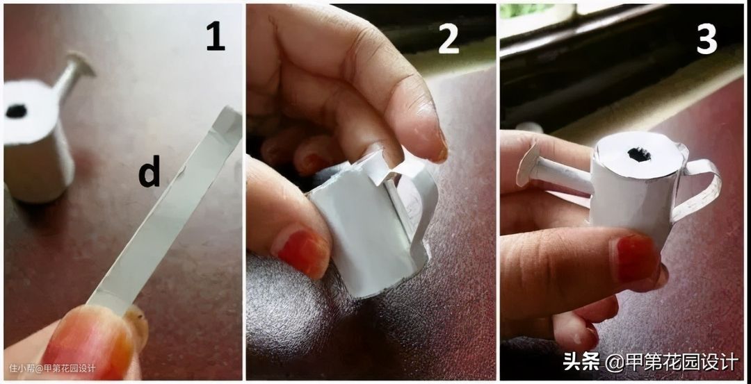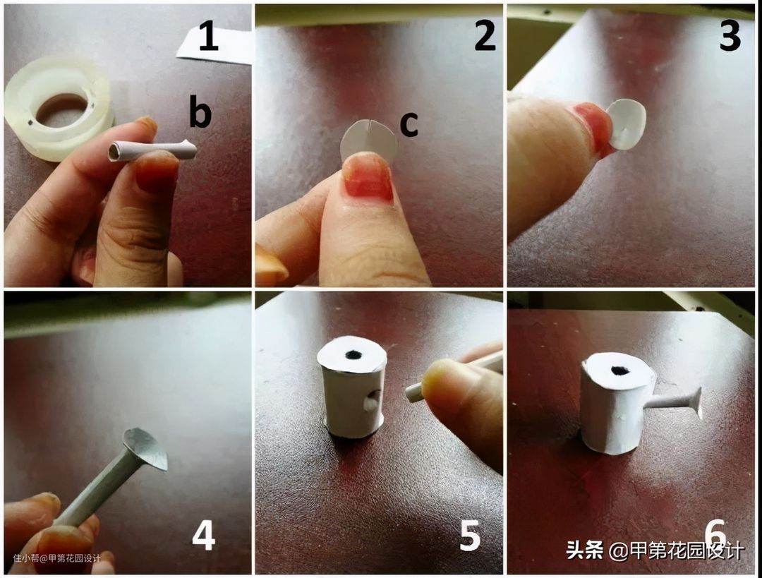 第6步:然后,再用厚纸张(也可用塑料)制作一个小喷壶。