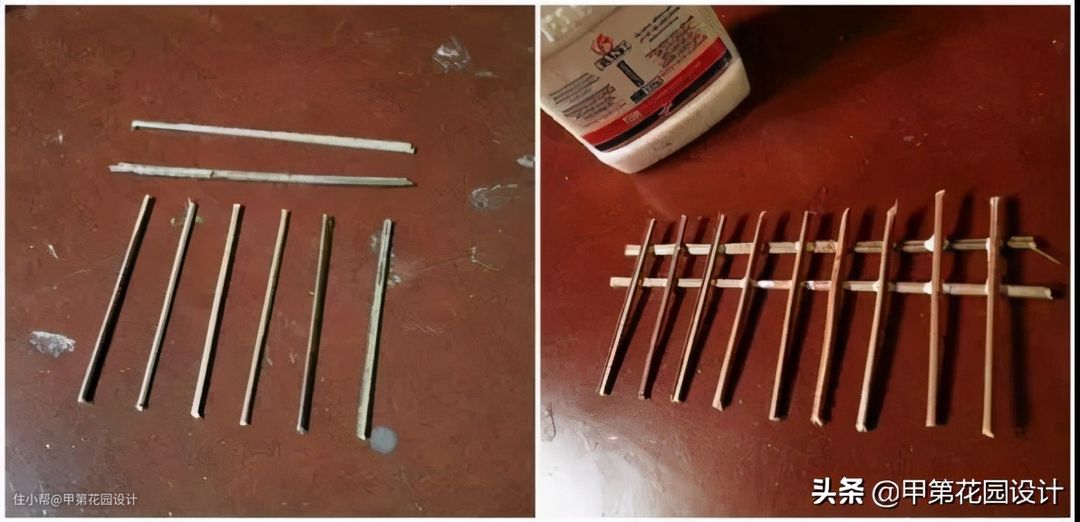 第3步:可以收集一次性竹筷子或者烧烤棍(小心竹子刺进手指里哦),做栅栏。长短根据自己需要定,同样控制统一长度。