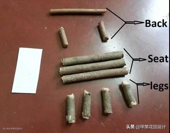 第1步:用来做长椅的小树枝木棍(随便什么树枝都可以也可以用小竹枝),树枝最长的长度控制在5CM左右吧。