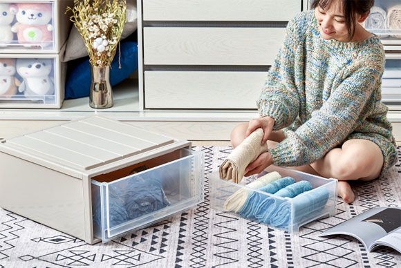尽量将衣服挂起来收纳,比如夏季T恤、厚外套。另外,长短衣服最好区分挂能避免浪费短衣下面的空间,如:夏季连衣裙、冬天厚外套。抽屉适合用来叠放衣物,能方便地把里面空间利用起来。