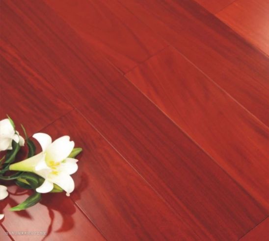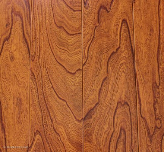 花梨木地板原料花梨,属紫檀树种,木质比较坚硬,颜色多为赤色,红紫色,纹理很清晰,色泽也较柔和,靠近木材中心的颜色比较淡,越往外颜色就越深,是赤色或者红褐色。