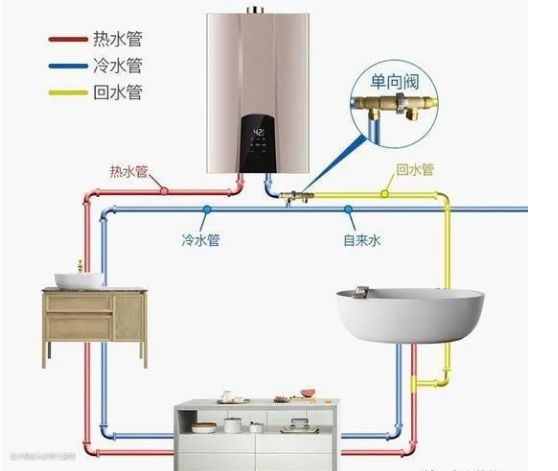 ▲上图没有回水管,回水热水与冷水混合进入燃气热水器,本身对热水器就是伤害;最大的问题是热水回流会导致凉水出水口有热水现象,比如马桶冲水是热水,哎呦,史珍香,当然有的人担心会损坏家里冷水管,天啊,你们装修谁家还用凉水管?冷热水管价格相差几毛钱,冷水可以过热水管,热水不能过冷水管,何不都买热水管呢?