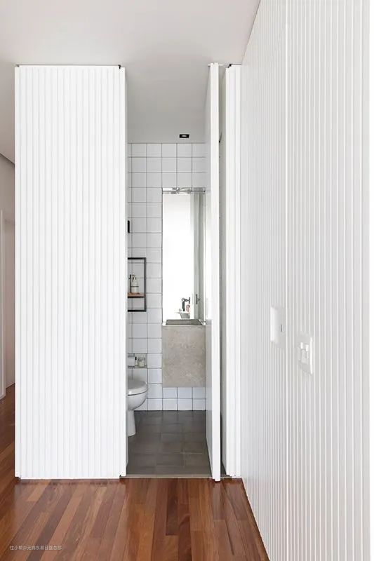 无论是卫生间门还是卧室门,都可以尝试做隐形式的,将门“藏”进墙里或者柜子里,不开门的时候完全可以忽略。