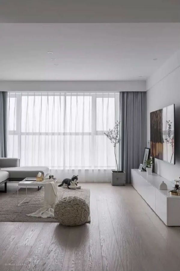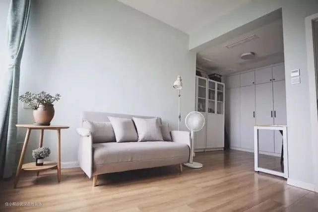 木地板除了比较常见的原木色之外,像是灰木色的也很适合用在小户型设计当中,尤其是以灰色为主的轻奢风、北欧风空间,加入灰木色的木地板更好看。