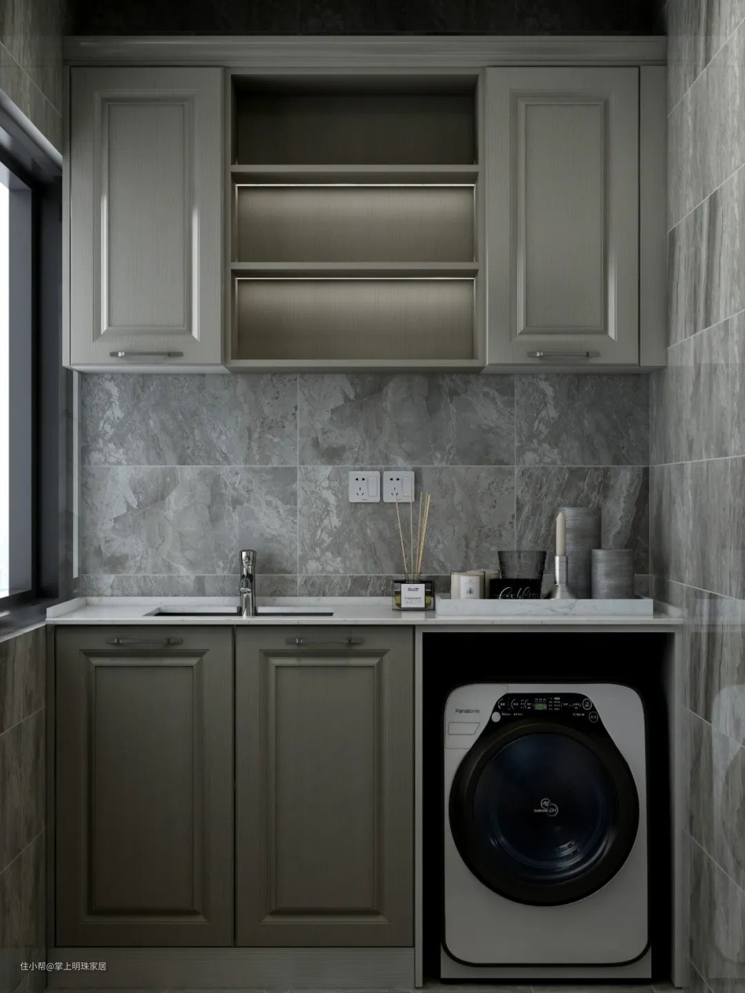 ▲厨房小阳台打造中空式柜体,完美隐藏洗衣机;台下盆的设计,更方便打扫卫生。