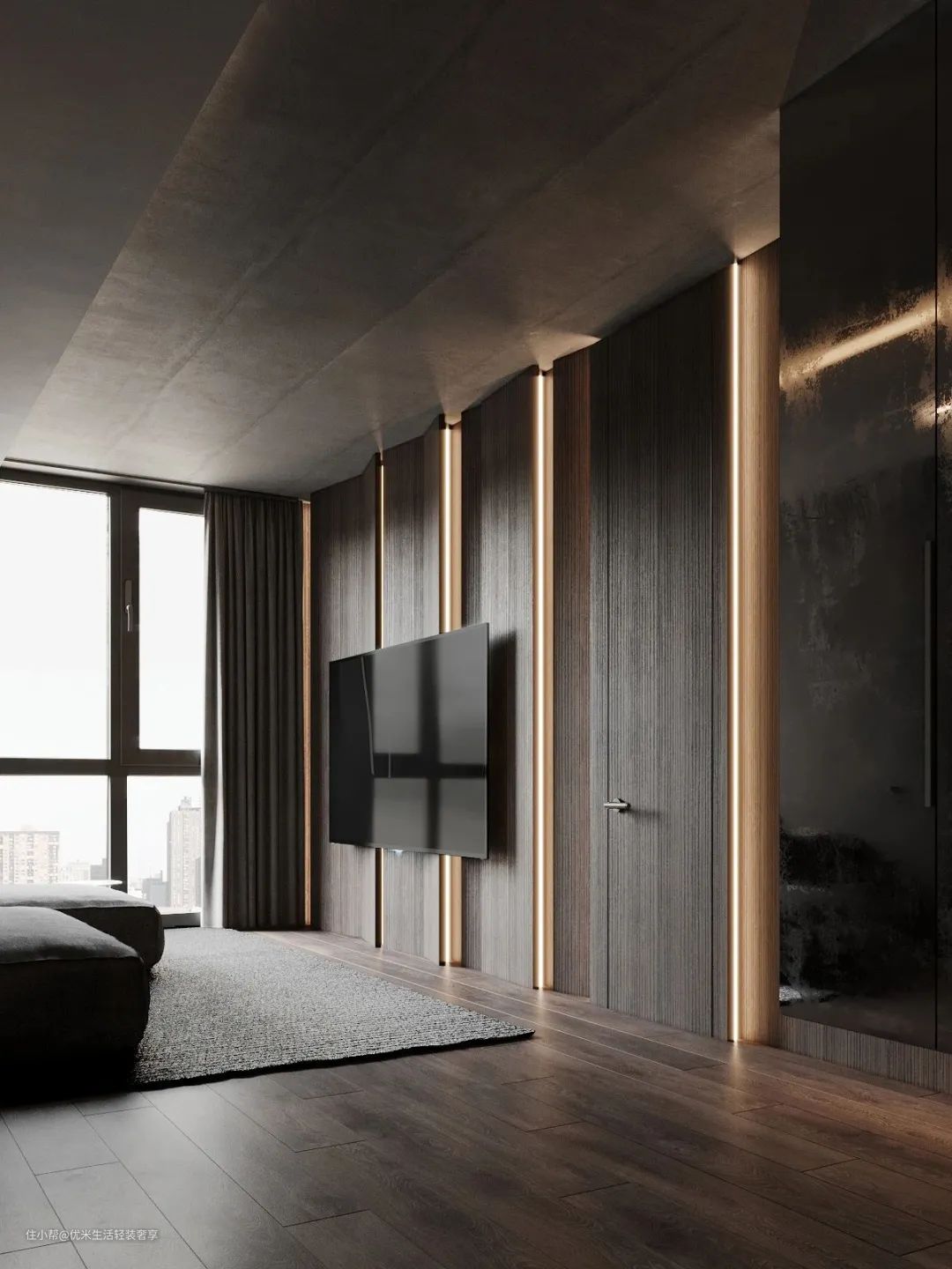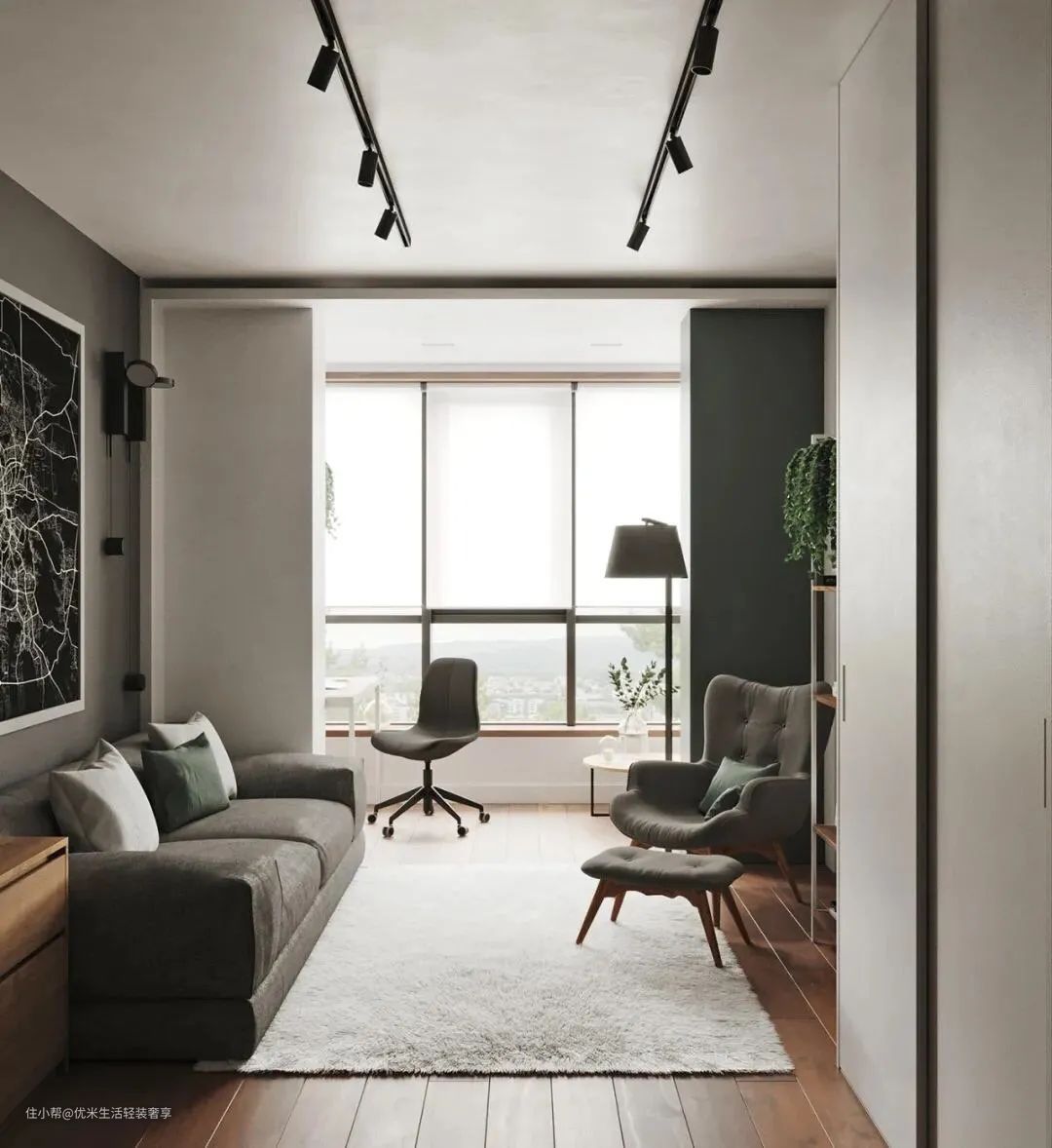 3.沙发旁需要补充照明可以选择落地灯或者悬臂壁灯,既方便阅读还能缓解电视屏幕对眼睛的刺激。