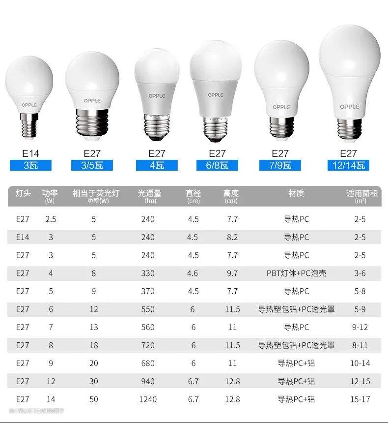 在选购灯泡时除了关注光通量,还要考虑光源效率,即每一瓦电力所发出的光的量。一般来说功率大的灯泡会比较亮,但是8W的LED灯和40W的白炽灯亮度其实一样的,这就涉及到光源效率的差异。