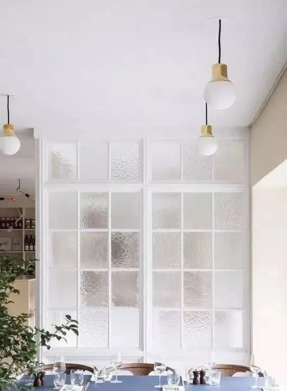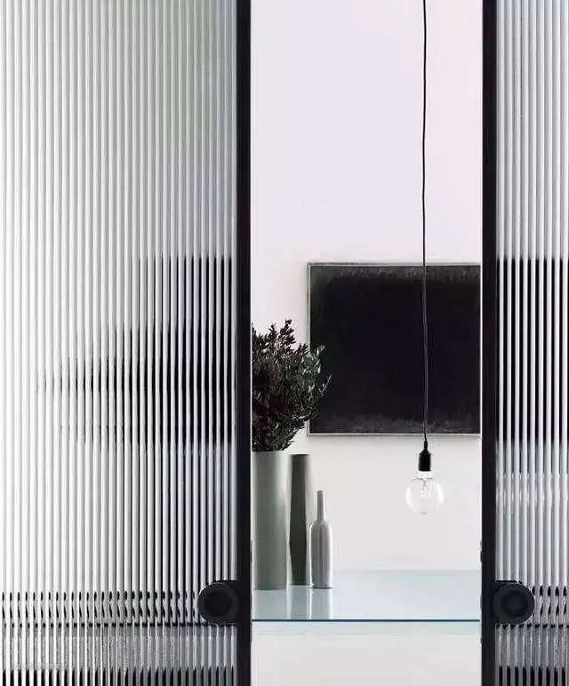 长虹玻璃的竖纹能让房间看起来更高,透过它漫射的光线,和百叶窗有类似调节光影的功效,为了凸显它的朦胧美,建议安装在近窗、近光源的地方。