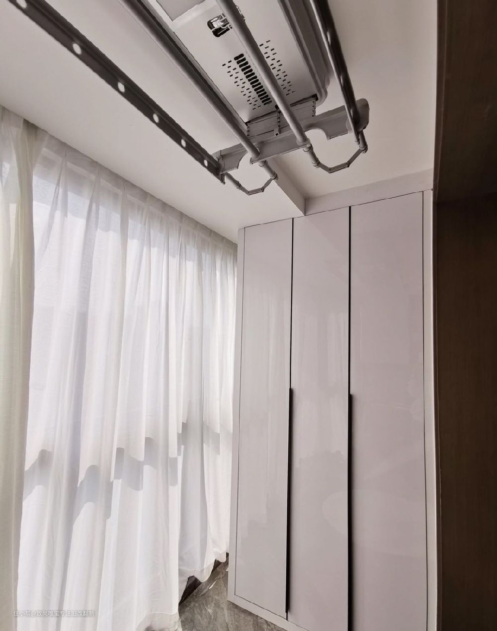 整体现代感很强,高分子加高门板,顶面无主灯设计,阳台没有装移门整体空间更大。