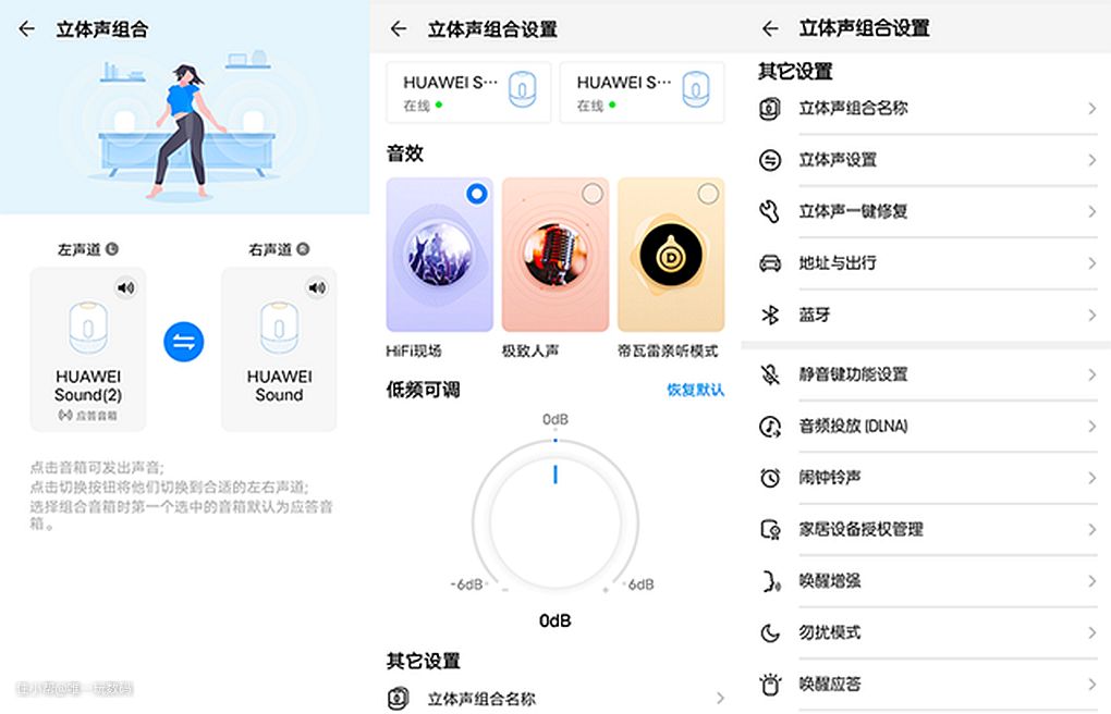 当然,华为Sound智能音箱还可以使用两台进行组建立体声,对于组合立体声音箱也非常期待。组成立体声音箱组合,需要两个音箱全部配网成功,在APP“AI音箱”里面,就可以轻松操作了。
