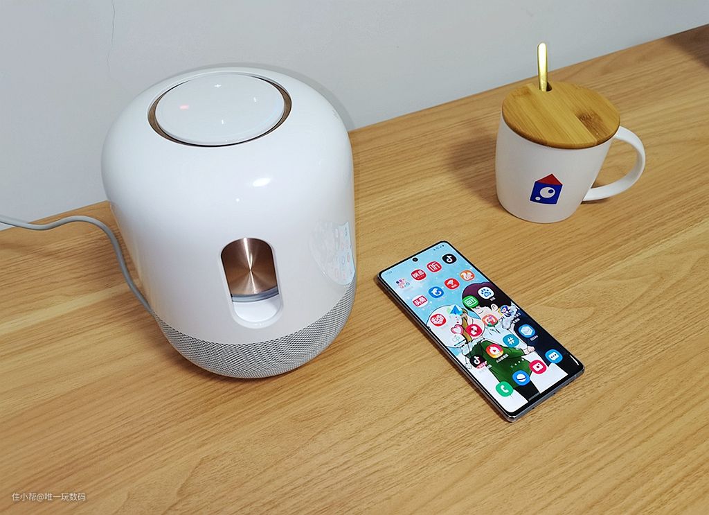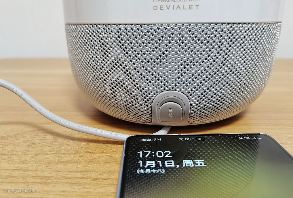 至于连接,前面也介绍了,因为拥有NFC功能,所以只要手机带有NFC功能,只需与华为Sound智能音箱进行短暂接触即可一触即连,非常便捷。