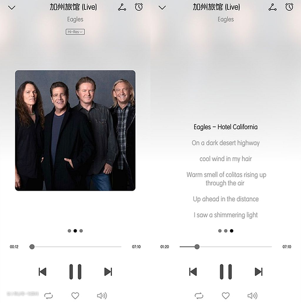 在华为Sound智能音箱播放老鹰乐队现场版的《加州旅馆》时,将音乐中观众的欢呼营造出现场氛围感,整首歌曲中,人声与乐器的分离非常充分,中频表现的非常饱满,人声动感且富有磁性,彷佛置身演唱会现场。