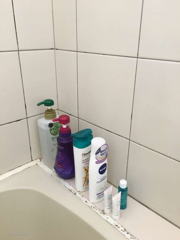 如果你每次洗完澡不顺便把淋浴间这种小平台擦拭干净的话,防水条就会如图中一样发霉(这间是我爸妈使用的,拍照是要当示意图,然后拍完照后我就拿清洁剂把它处理干净了...)!