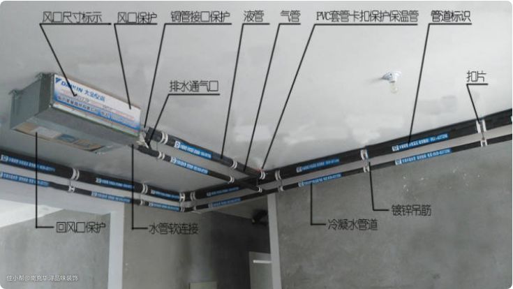 因为涉及到吊顶、管线布置,中央空调的安装比普通空调要困难得多。在装修刚开始的时候,一般是水电交底那天,安装中央空调的人应该和工长、水电师傅以及设计师一起协商安装方案。