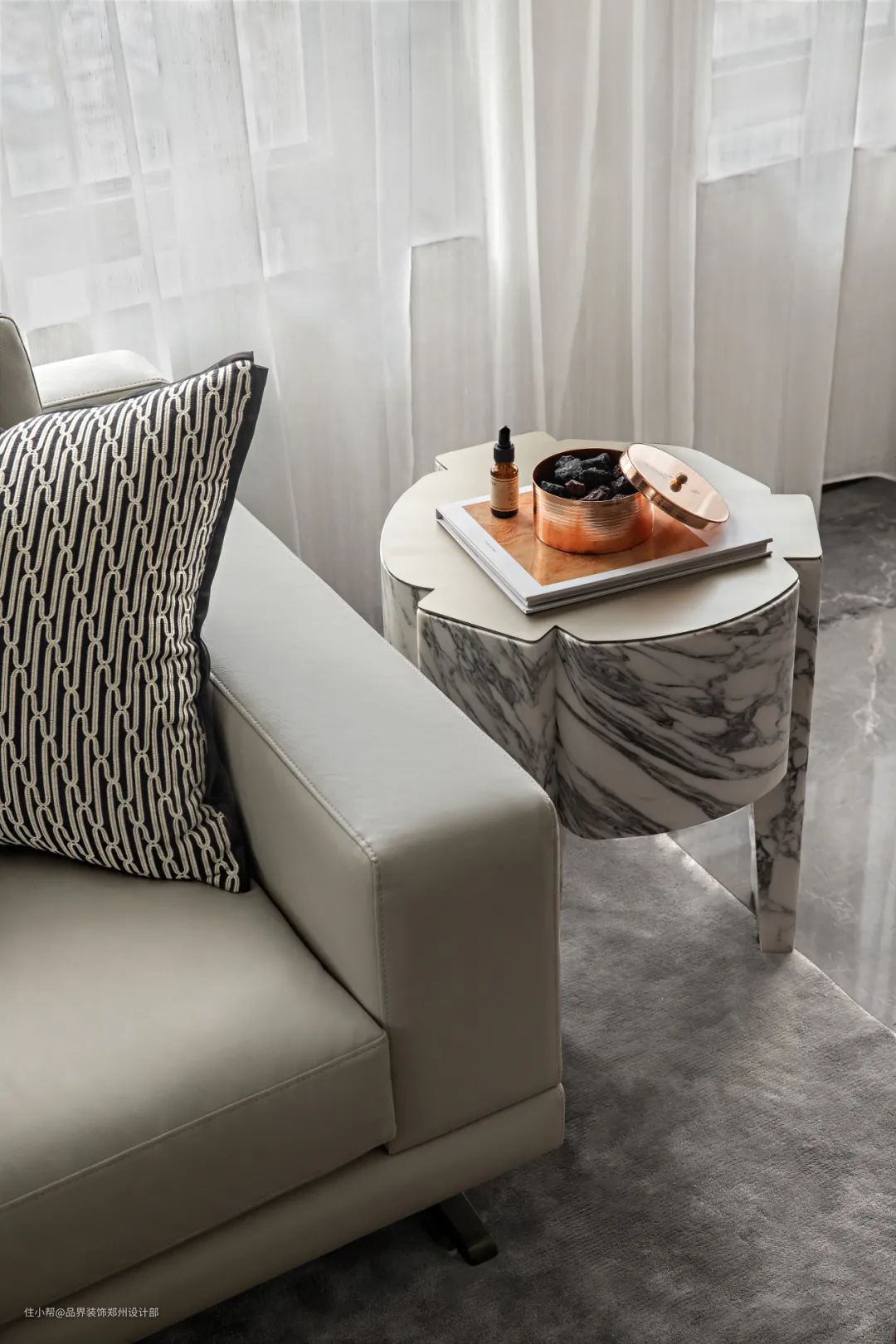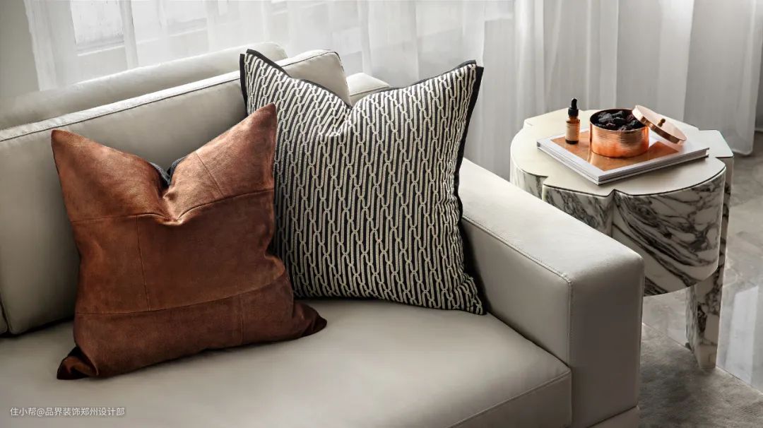 在这个项目中,我们严格考量对“物”的筛选,柔软而泛有光泽的皮质、织锦布艺,旅行收藏的艺术品与古旧摆件,皆成为日常生活的点缀。