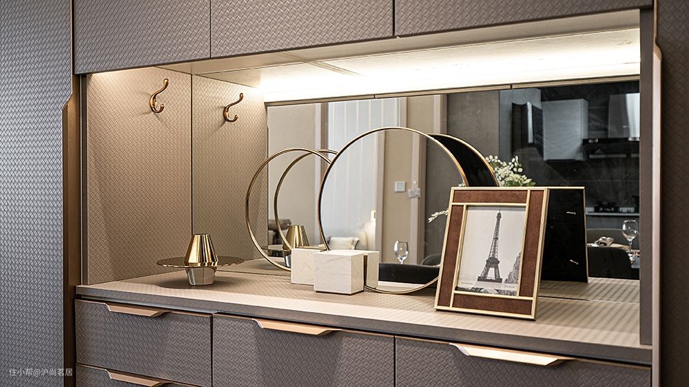 8、玄关区域可以设置感应灯,柜内设计辅助灯光,找东西更方便。9、墙壁为非承重墙的情况下,可将墙壁打掉,设计成嵌入式玄关柜,玄关通道的距离尽量不要小于1m,否则会很狭窄。