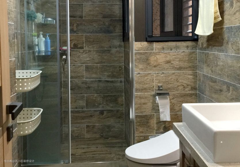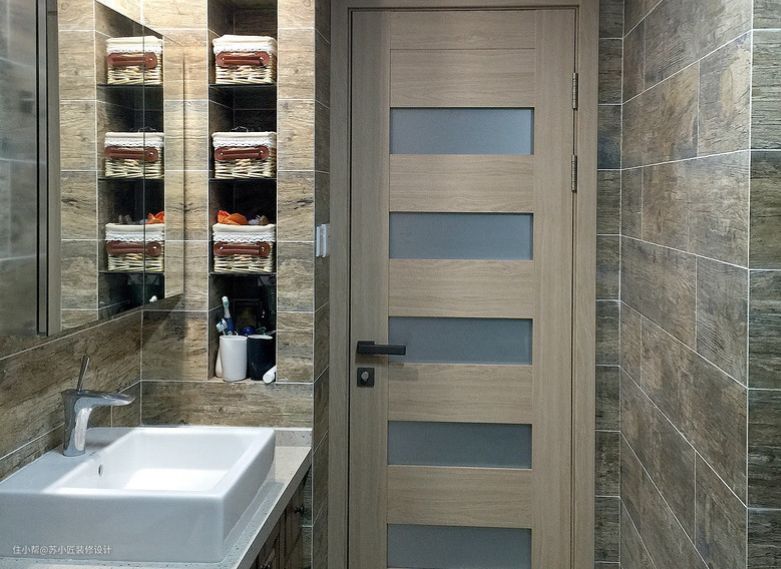 卫生间将小户型的空间收纳做到了极致,墙体镂空的储物、墙壁粘钩和粘框的设计都让卫生间看起来井然有序,干净清爽,没有一点杂物堆积的感觉,干湿分离的阻隔也是卫生间保持干燥保持整洁的利器。
