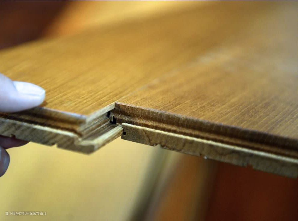 - 木地板的边缘和下面用胶粘,紧紧地贴住旁边的墙壁、衣柜、门框,方可避免伸缩。(贵)